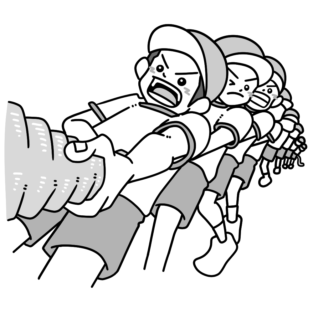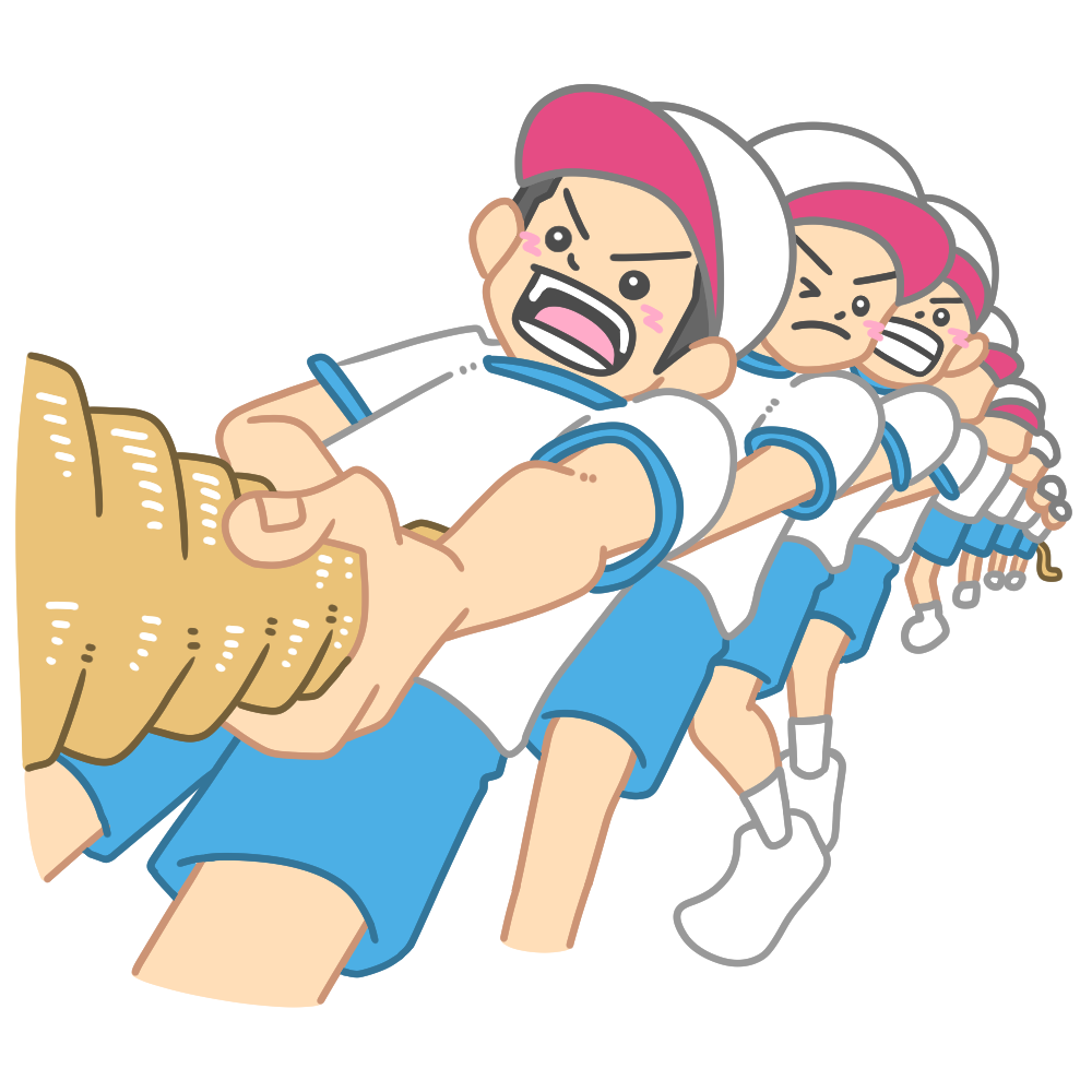綱引きをする児童 投稿日 2025-12-21 著者 hista006 カテゴリー 運動会 赤白帽子を被って綱引きをする児童のイラストです。(運動会、体育)運動会や体育の授業で行われる綱引きの様子を表したイラストで、協力することや力を合わせる大切さが伝わりやすい素材です。元気に取り組む児童の姿が分かりやすく、学校行事の紹介や事前指導、振り返りの資料などさまざまな教育場面で活用できます。 【使い方アイデア】運動会や体育行事の案内プリントに学校だよりや学級通信の挿絵に協力やチームワークを学ぶ教材に 体操服 児童 協力 赤白帽子 運動会