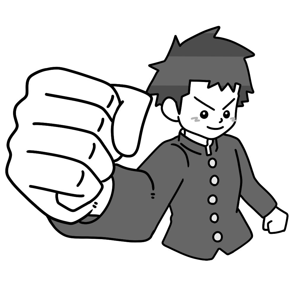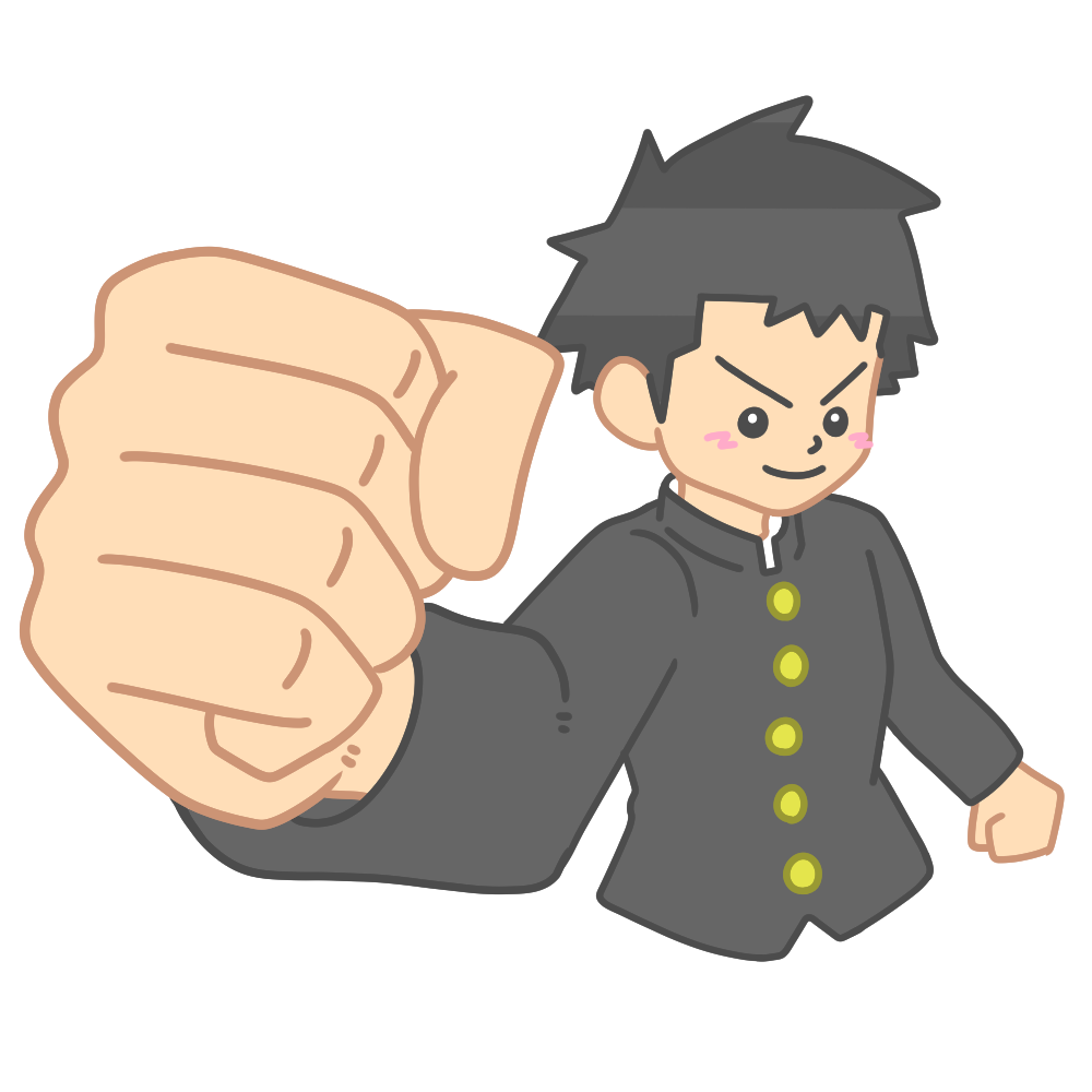 拳を突き出す学ラン男子 投稿日 2025-12-23 更新日 2026-01-05 著者 hista006 カテゴリー 中学生・高校生 微笑んで拳を突き出す学ランを着た男子生徒のイラストです。(生徒会、応援、挨拶、コミュニケーション)前向きな気持ちや仲間を応援する雰囲気が伝わりやすいポーズで、生徒会活動や学校行事の呼びかけなどに使いやすい素材です。明るく親しみのある表情のため、学級づくりや自治的な活動を紹介する場面にも取り入れやすく、学校生活を前向きに表現できます。 【使い方アイデア】• 生徒会からのメッセージや呼びかけに• 学校行事や活動紹介の掲示物に• 学級通信や広報プリントの挿絵に ガッツポーズ ポーズ ポジティブ 学ラン 応援 成長 手 拳 生徒会