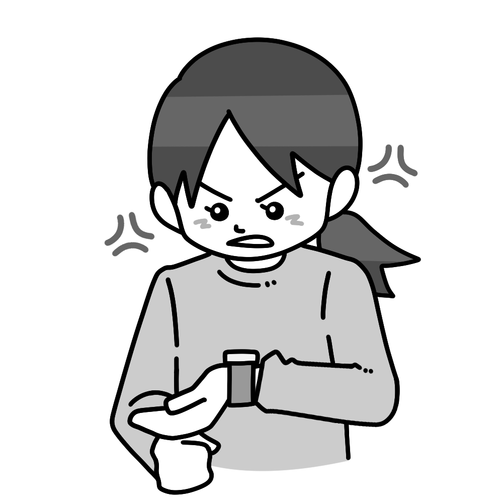 腕時計を見て怒る女性 投稿日 2025-12-26 著者 hista006 カテゴリー 生活 腕時計を見て怒っている女性のイラストです。(時間、遅刻、トラブル)約束の時間に間に合わない状況や、予定が乱れたことへの不満が伝わりやすい表情のイラストで、時間管理の重要性やトラブル場面を説明したいときに使いやすい素材です。感情が分かりやすいため、状況説明や注意喚起の導入としても活用できます。 【使い方アイデア】• 遅刻や時間トラブルを考える教材に• ビジネスマナーや約束を守る指導資料に• 学校や職場の注意喚起用掲示物に 怒る 時計 時間 遅刻