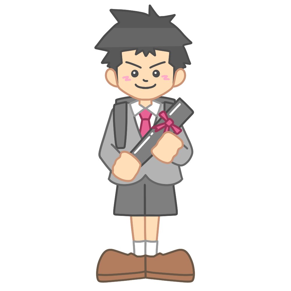 卒業生(男の子) 投稿日 2025-12-30 著者 hista006 カテゴリー 卒業式・学期末 ランドセルを背負って卒業証書を持っている児童(男の子)のイラストです。(卒業生、卒業式、学校行事)小学校生活を終え、新しい一歩を踏み出す卒業生の姿を分かりやすく表したイラストで、成長や節目の場面をあたたかく伝えられます。卒業式のお知らせや記念プリント、学級通信などに使いやすく、思い出や感謝の気持ちを表現したい場面にも適しています。 【使い方アイデア】卒業式や修了式の案内プリントに学級通信や学校だよりの挿絵に卒業を祝う掲示物や記念資料に ランドセル 児童 卒業式 卒業生