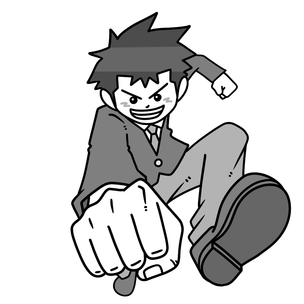 壁を突き破るブレザー男子 投稿日 2026-01-03 更新日 2026-01-08 著者 hista006 カテゴリー 中学生・高校生 カテゴリー 入学式・新学期 カテゴリー 卒業式・学期末 壁を突き破るブレザー制服を着た男子生徒のイラストです。(新年、新学期、新学年、やる気、目標、チャレンジ、受験、進路指導)笑顔で勢いよく前に進む姿を描いており、新しいスタートに向けて意欲的に挑戦する気持ちを象徴したイラストです。新年や新学期、新学年の節目に目標を立てる場面と相性がよく、自分の力を信じて行動する前向きな姿勢を伝えることができます。 【使い方アイデア】新年・新学期・新学年のスタート掲示に目標設定や決意表明の活動に進路指導や受験応援の資料に ブレザー ポーズ ポジティブ やる気 レベル 成功 成長 拳 新学期 殴る 生徒会 進路指導