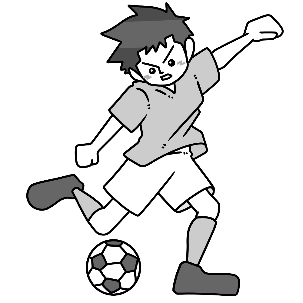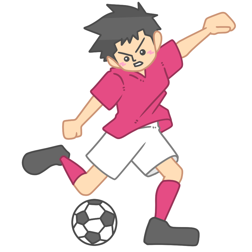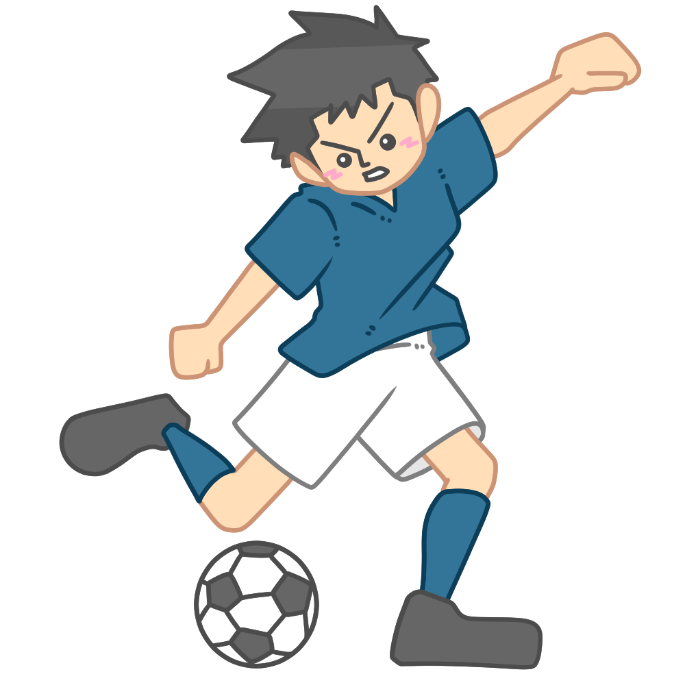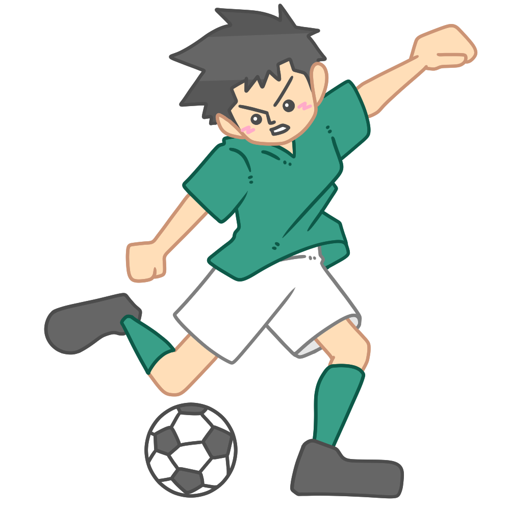 ボールを蹴る瞬間のサッカー選手(男性) 投稿日 2026-01-05 著者 hista006 カテゴリー サッカー ボールを蹴る瞬間のサッカー選手のイラストです。(シュート、ロングパス、サッカー)足を振り抜く動きが分かりやすく、シュートやロングパスの迫力ある場面を表現したイラストです。試合の見どころやプレーの説明に使いやすく、体育の授業や部活動の資料、スポーツ行事の案内など幅広い場面で活用できます。 【使い方アイデア】サッカーの技術や動きを説明する教材に体育や部活動の指導資料にスポーツイベントや大会案内の挿絵に サッカー シュート スポーツ パス 蹴る