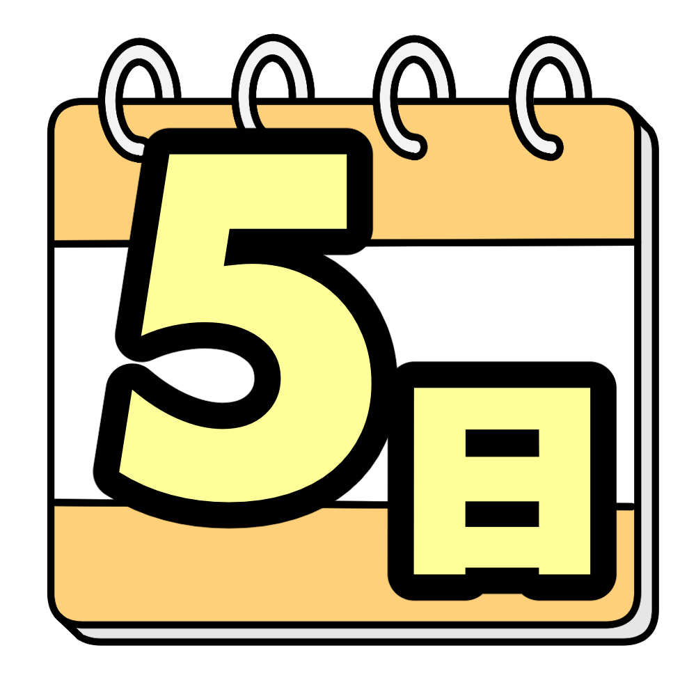 大きく数字が目立つデザインなので、背面黒板や掲示物で日付を強調したい場面に使いやすく、行事までの残り日数を示すカウントダウンにも向いています。さまざまな数字と組み合わせて、年間を通して活用できるイラストです。