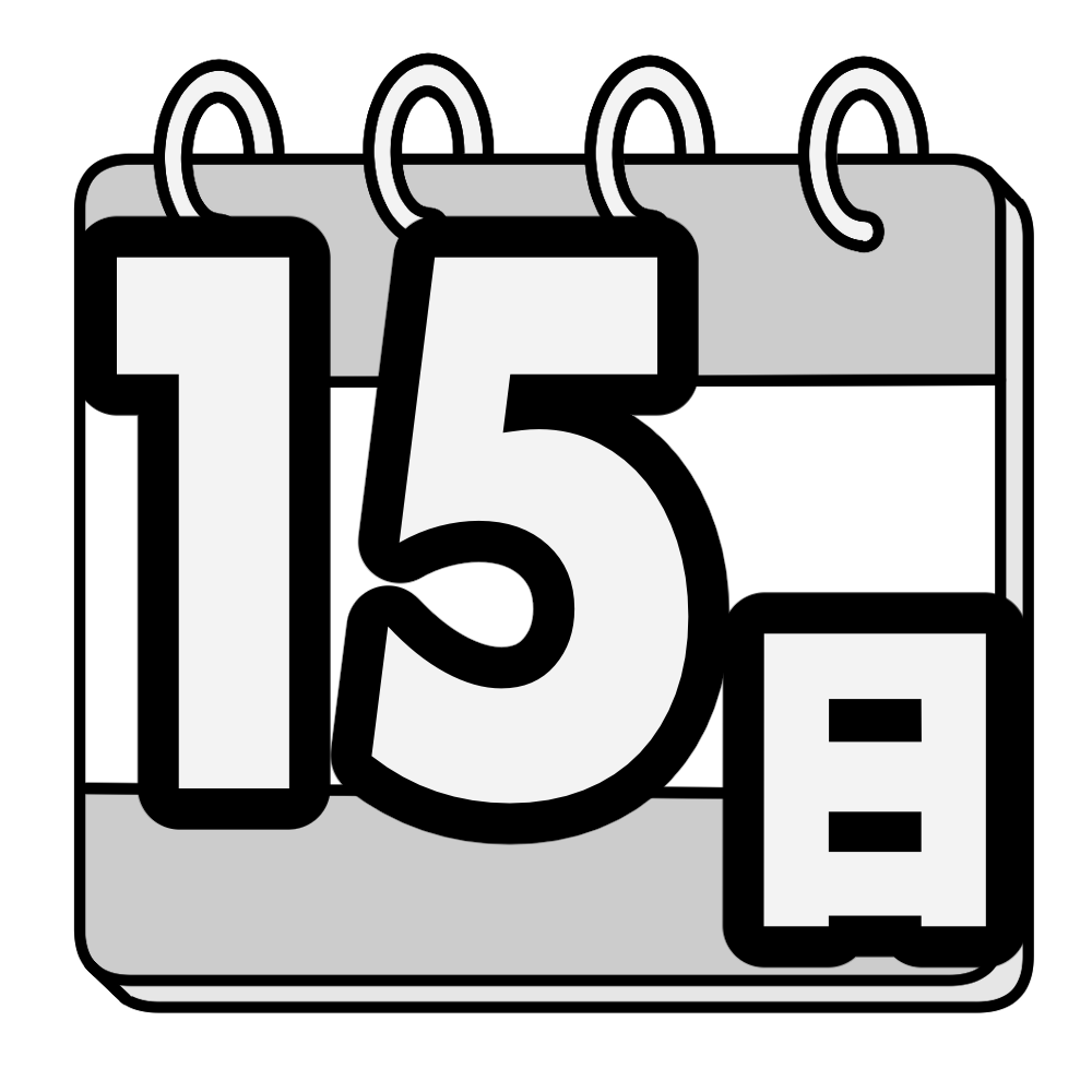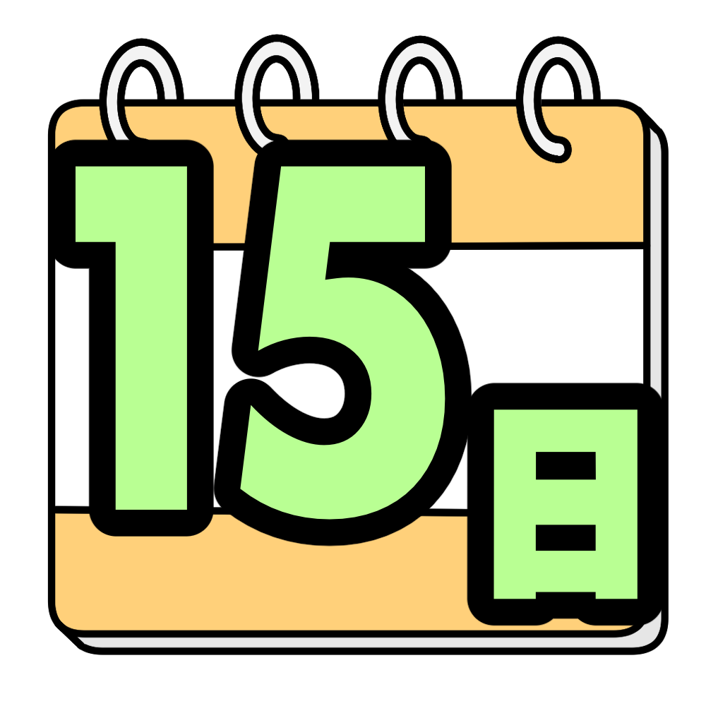 15日 投稿日 2026-01-07 著者 hista006 カテゴリー 教材 カレンダー風にデザインした日付のイラストです。(日付、数字、カレンダー、カウントダウン)大きく数字が目立つデザインなので、背面黒板や掲示物で日付を強調したい場面に使いやすく、行事までの残り日数を示すカウントダウンにも向いています。さまざまな数字と組み合わせて、年間を通して活用できるイラストです。 【使い方アイデア】背面黒板の日付表示に行事やテストまでのカウントダウンに学級通信や掲示物の日付アイコンとして カレンダー 掲示物 文字 日付