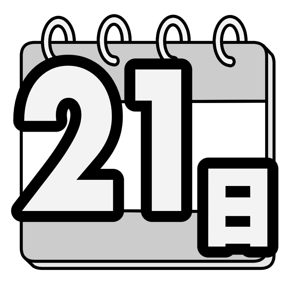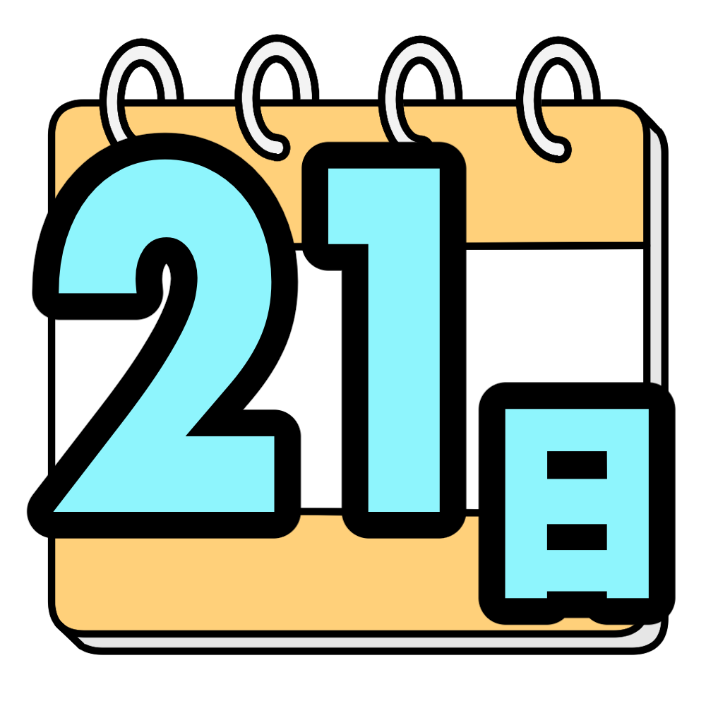 21日 投稿日 2026-01-07 著者 hista006 カテゴリー 教材 カレンダー風にデザインした日付のイラストです。(日付、数字、カレンダー、カウントダウン)大きく数字が目立つデザインなので、背面黒板や掲示物で日付を強調したい場面に使いやすく、行事までの残り日数を示すカウントダウンにも向いています。さまざまな数字と組み合わせて、年間を通して活用できるイラストです。 【使い方アイデア】背面黒板の日付表示に行事やテストまでのカウントダウンに学級通信や掲示物の日付アイコンとして カレンダー 掲示物 文字 日付