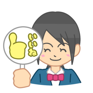 「いいね」と書かれた札を手に持ち、相手の意見や行動を肯定的に受け止めている様子を表した生徒のイラストです。話し合いや発表の場面で使いやすく、前向きな雰囲気づくりや互いを認め合う学習活動に役立つデザインになっています。