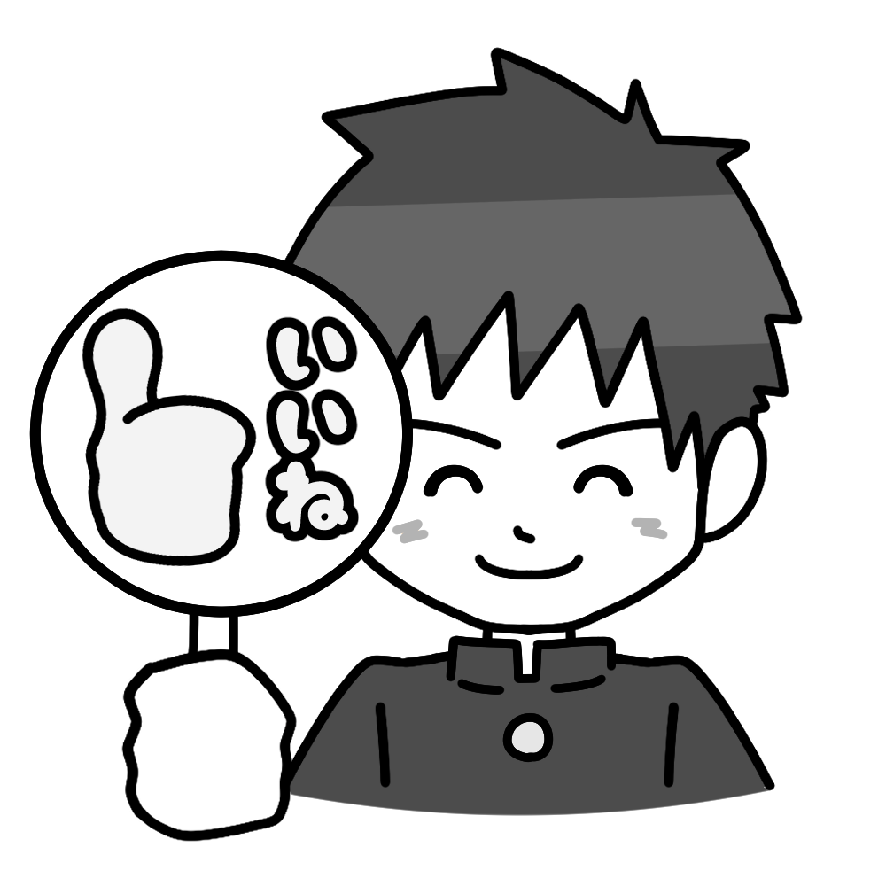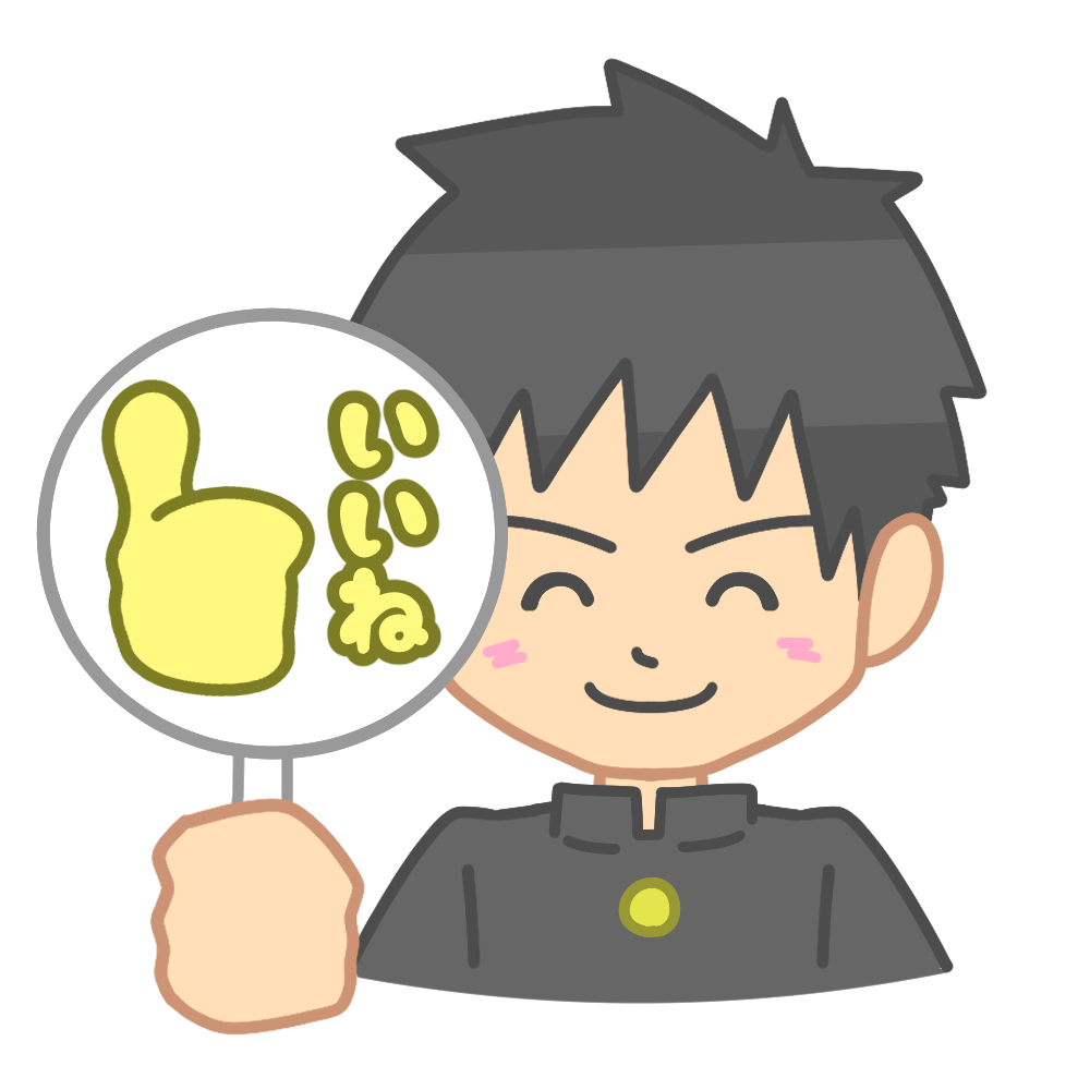 「いいね」の札を持った学ランを着た生徒のイラストです。(いいね、評価、賛成、生徒)
