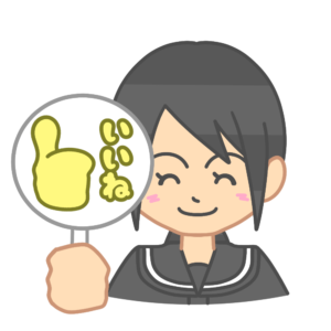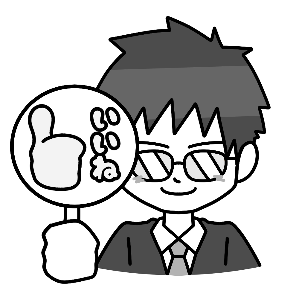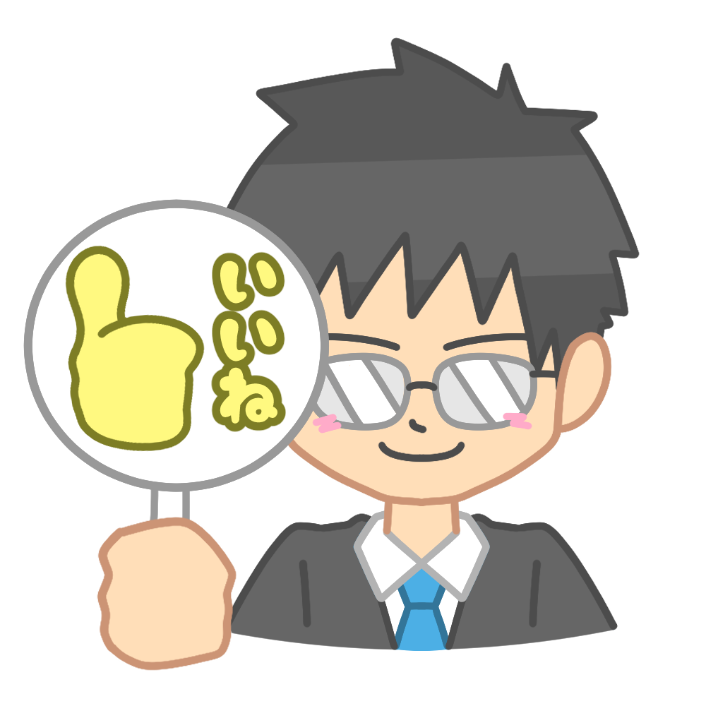 スーツ姿の男性が「いいね」と書かれた札を持ち、相手の考えや行動を前向きに評価している様子を表したイラストです。先生やサラリーマンをイメージしやすく、信頼感や安心感のあるポジティブな雰囲気で、さまざまな場面に使いやすいデザインになっています。