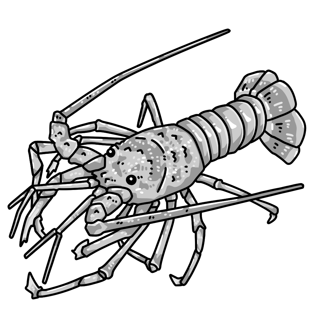 伊勢海老のイラストです。(伊勢海老、甲殻類、海の生き物、食材)
