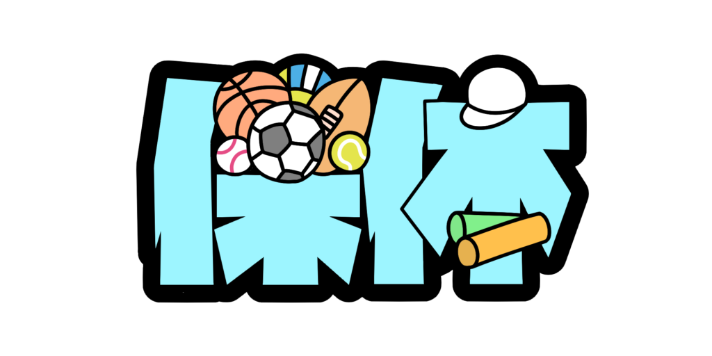 「保体」の文字のまわりに、保健と体育の授業をイメージさせる道具を配置した、教科の特徴がひと目で分かる文字イラストです。運動と健康の両方を感じられる親しみやすいデザインで、授業への意欲を高める場面にも使いやすくなっています。