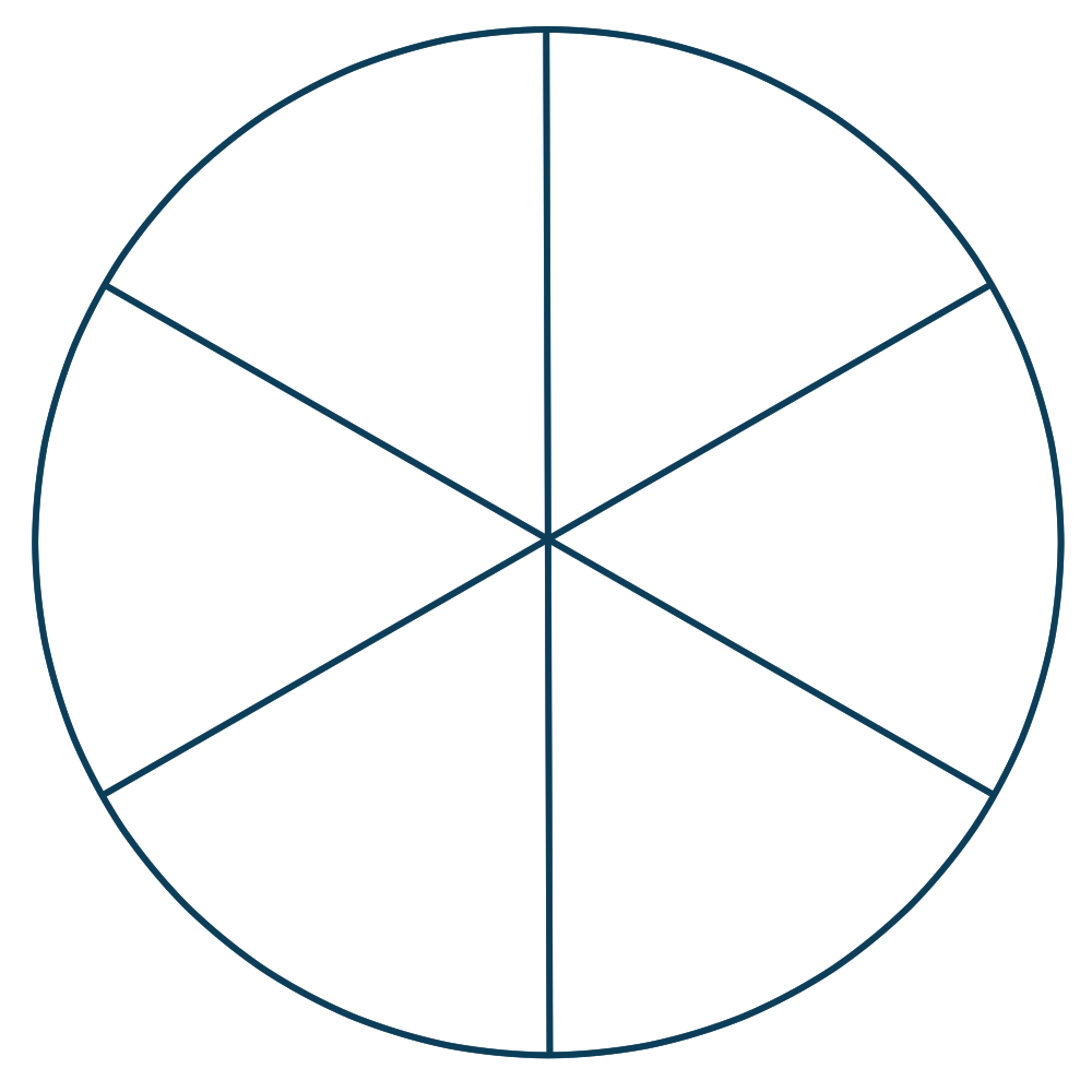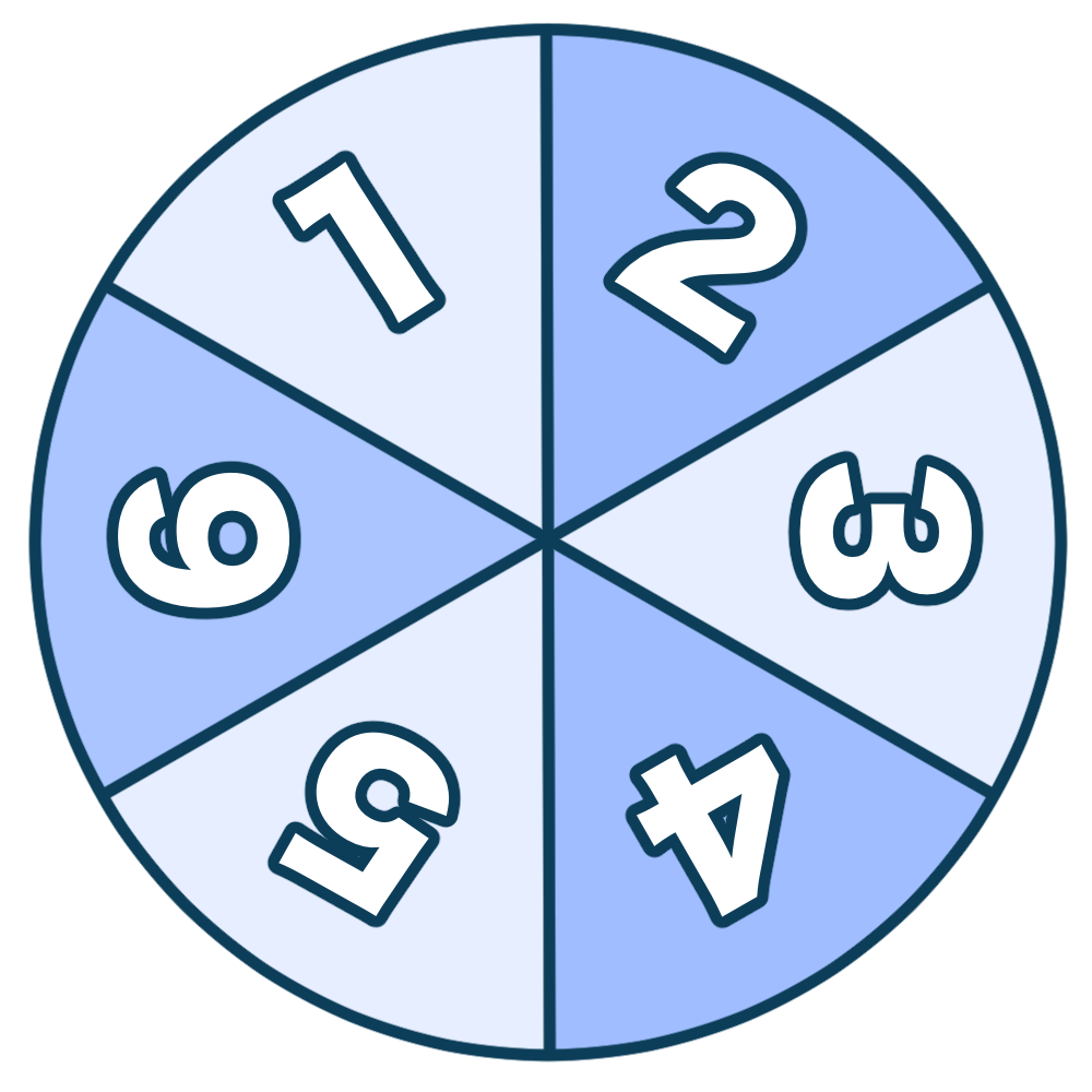 学校の掃除当番を決めるときに使える円形の担当表のイラストです。白色の台紙に担当場所を書き込み、中央には1〜6の番号が配置された見やすいデザインになっています。