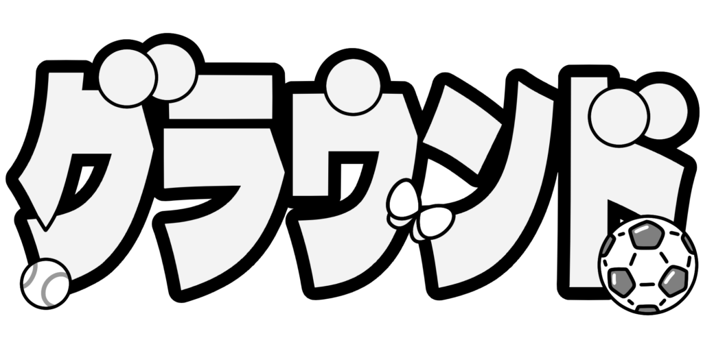 「グラウンド」の文字イラストです。(グラウンド 校庭 運動場 ボール 屋外活動 見出し)