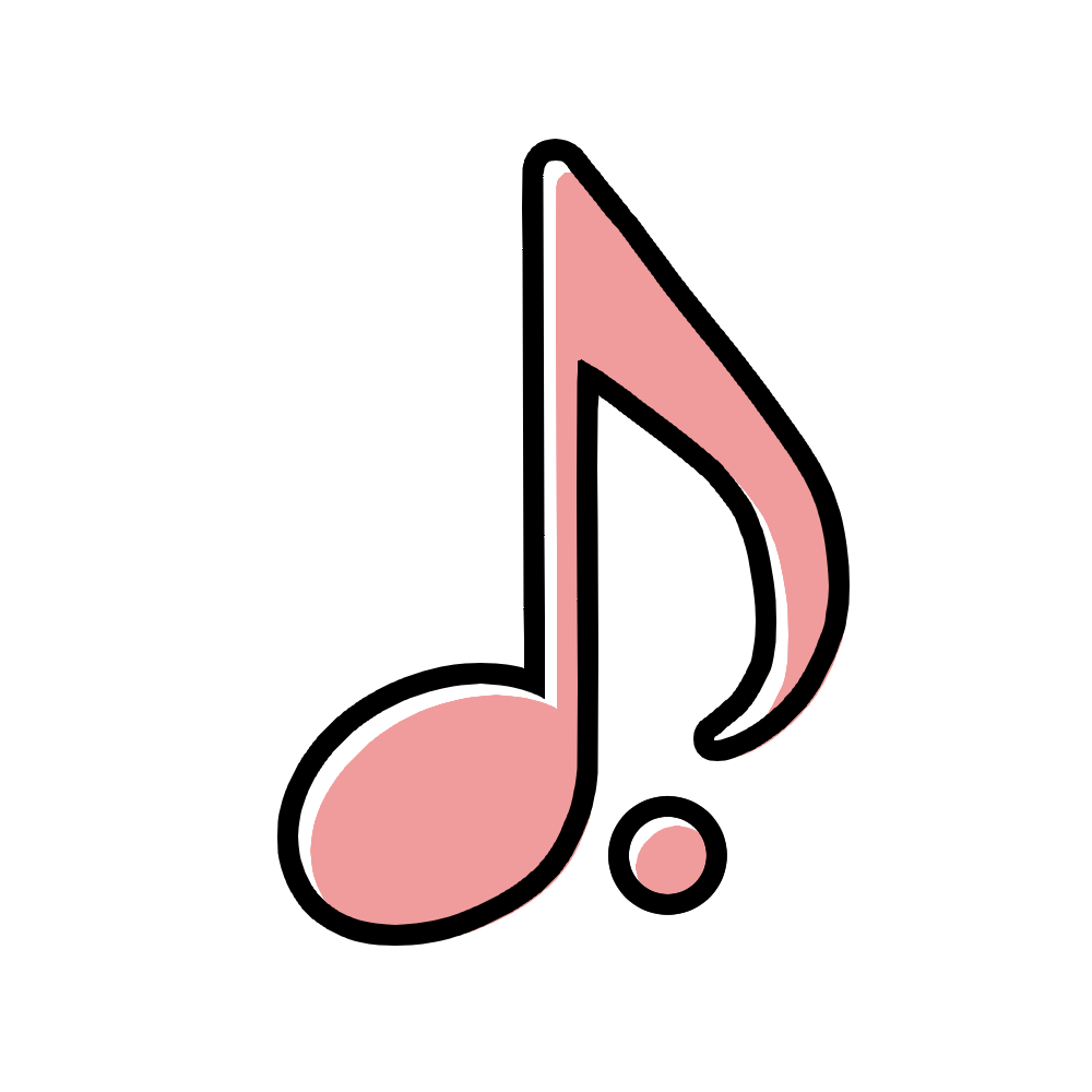 8分音符に付点が付いた音の長さを表す記号を、シンプルで親しみやすいデザインにしたアイコンイラストです。リズムの変化や細かな音の長さを学ぶ場面で使いやすく、音楽教材や資料に活用できます。