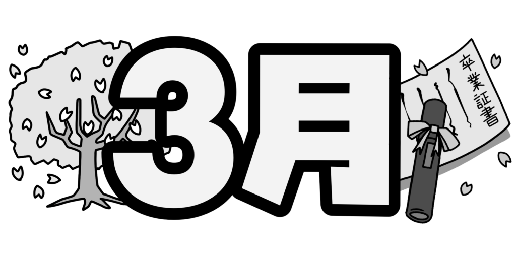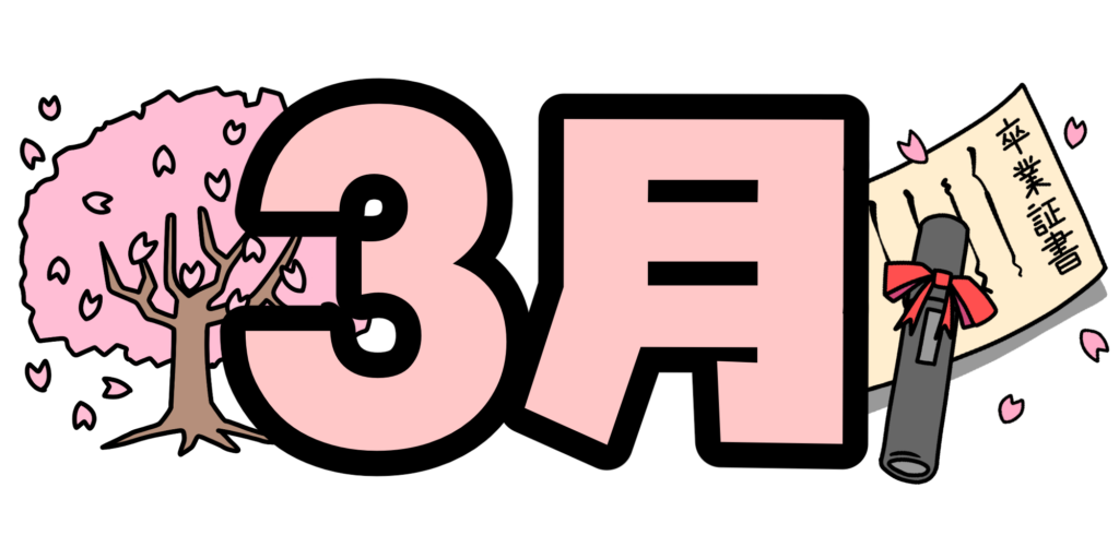 3月(学校) 投稿日 2022-05-05 更新日 2026-01-08 著者 hista006 カテゴリー 卒業式・学期末 カテゴリー 文字 カテゴリー 春 教育現場のタイトルに使える、桜と卒業証書の挿絵が入った三月の文字のイラストです。 卒業式 文字 日付 春