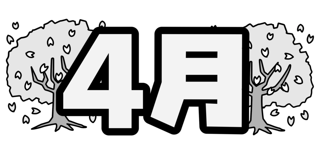 タイトルに使える、桜の挿絵が入った四月の文字のイラストです。