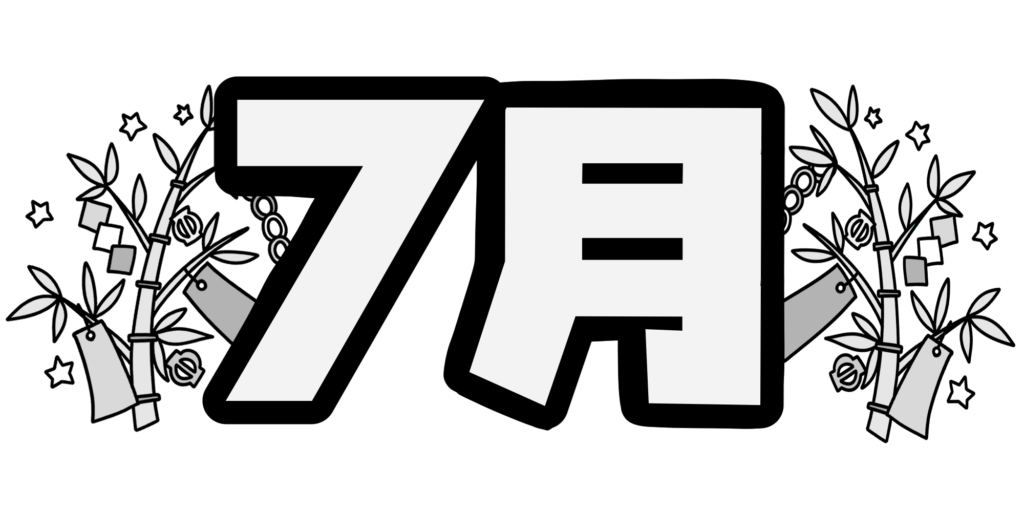 7月 投稿日 2022-05-05 更新日 2026-01-08 著者 hista006 カテゴリー 夏 カテゴリー 文字 タイトルに使える、七夕の挿絵が入った七月の文字のイラストです。 七夕 夏 文字 日付