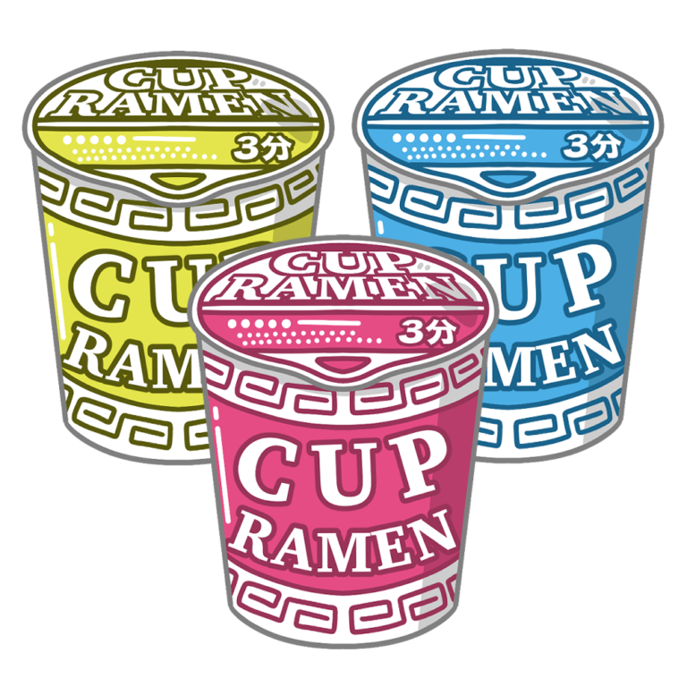 カップラーメンのイラストです。カップの中に麺とスープが入った、手軽に食べられるインスタントラーメンを […] -