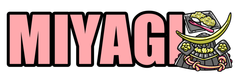 伊達政宗の兜とずんだ餅を添えた「MIYAGI」の文字イラストです。宮城県を象徴するモチーフを組み合わ […] -