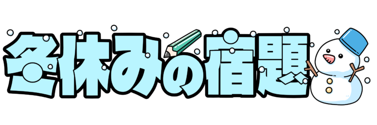 雪だるまを添えた「冬休みの宿題」の文字イラストです。(冬休み、宿題、学校) 冬休みシーズンの学級通信 […] -