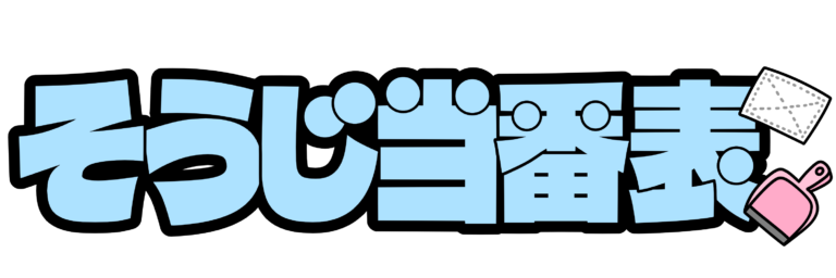 「掃除当番表」の文字イラストです。(掃除当番表 清掃 当番 役割分担 教室 見出し) 雑巾と塵取りが […] -