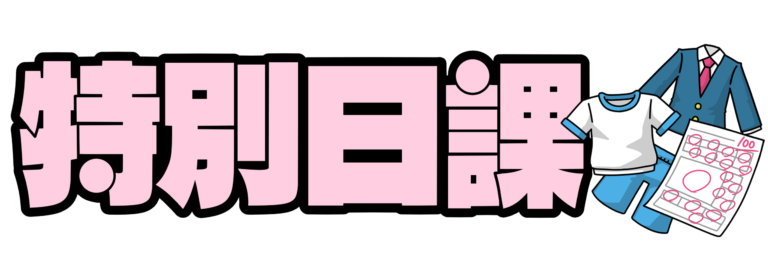 「特別日課」の文字イラストです。(特別日課 日課変更 行事日課 スケジュール 見出し) 制服の生徒や […] -