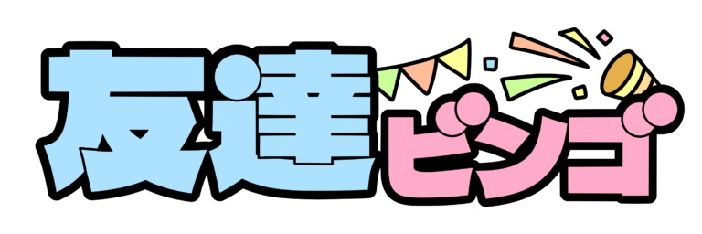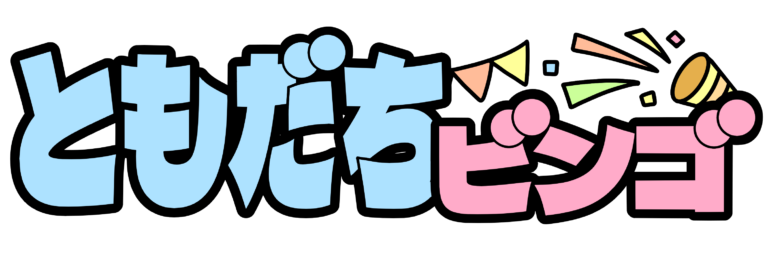 「ともだちビンゴ」の文字イラストです。(友達ビンゴ 交流活動 レクリエーション アイスブレイク 見出 […] -