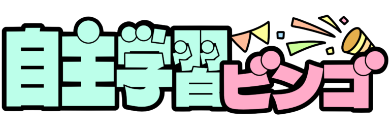 「自主学習ビンゴ」の文字イラストです。(自主学習ビンゴ 家庭学習 学習習慣 ビンゴ 学習活動 見出し […] -