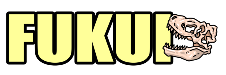 恐竜の化石を添えた「FUKUI」の文字イラストです。 恐竜の化石をモチーフにした化石が横に描かれたデ […] -