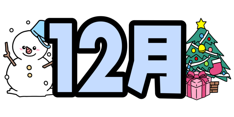 タイトルに使える、クリスマスの挿絵が入った十二月の文字のイラストです。 -