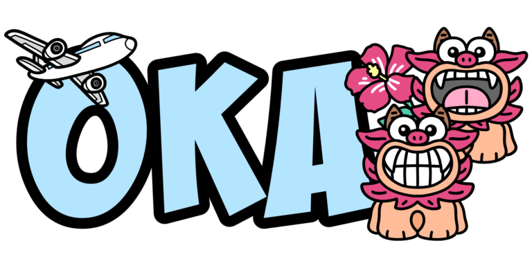 シーサーを添えた那覇空港の空港コード「OKA」の文字イラストです。 南国らしい明るい雰囲気で、沖縄を […] -