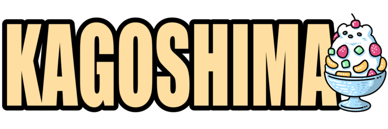 かき氷の白熊(しろくま)を添えた「KAGOSHIMA」の文字イラストです。 カラフルなフルーツがのっ […] -