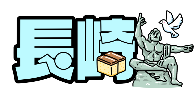 平和祈念像、鳩、カステラを添えた「長崎県」の文字イラストです。(都道府県、地域紹介、観光、平和学習) […] -