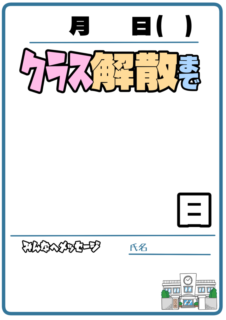 クラス解散までのカウントダウンと、クラスへのメッセージが書き込める枠(フレーム)イラストです。(クラ […] -