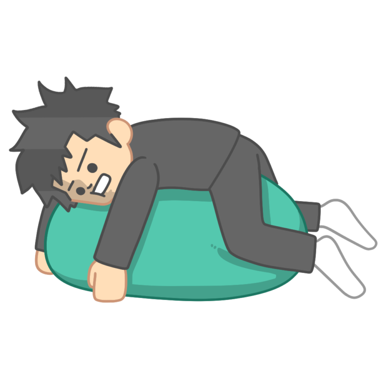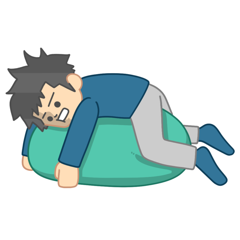 やる気が出ず、クッションの上でダラダラしている男性のイラストです。(宿題、やる気が出ない、だらだら、 […] -