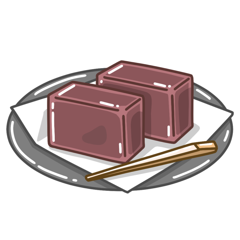 羊羹のイラストです。(ようかん 和菓子 おやつ 甘味 デザート) つやのある見た目が特徴的な羊羹をや […] -