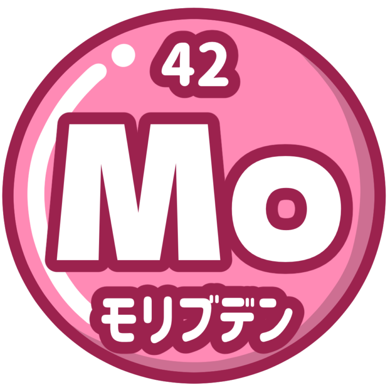 元素記号「Mo」(モリブデン)のイラストです。 モリブデンは、原子番号42、遷移金属に分類される元素 […] -