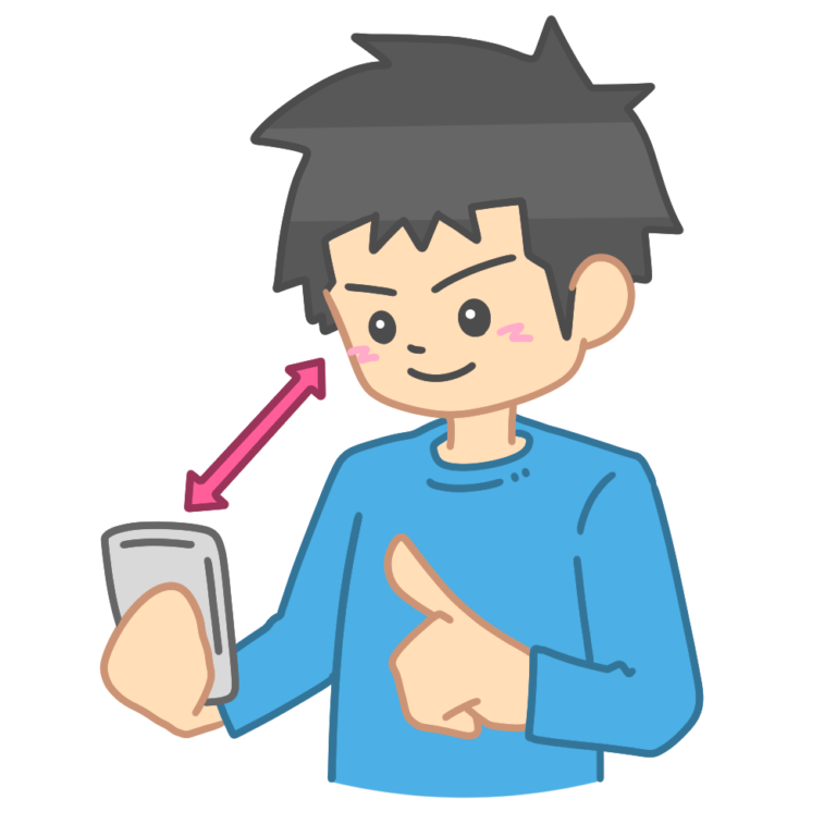 スマホを目から離して使っている男性のイラストです。(スマートフォン、使い方、健康) 画面と適切な距離 […] -