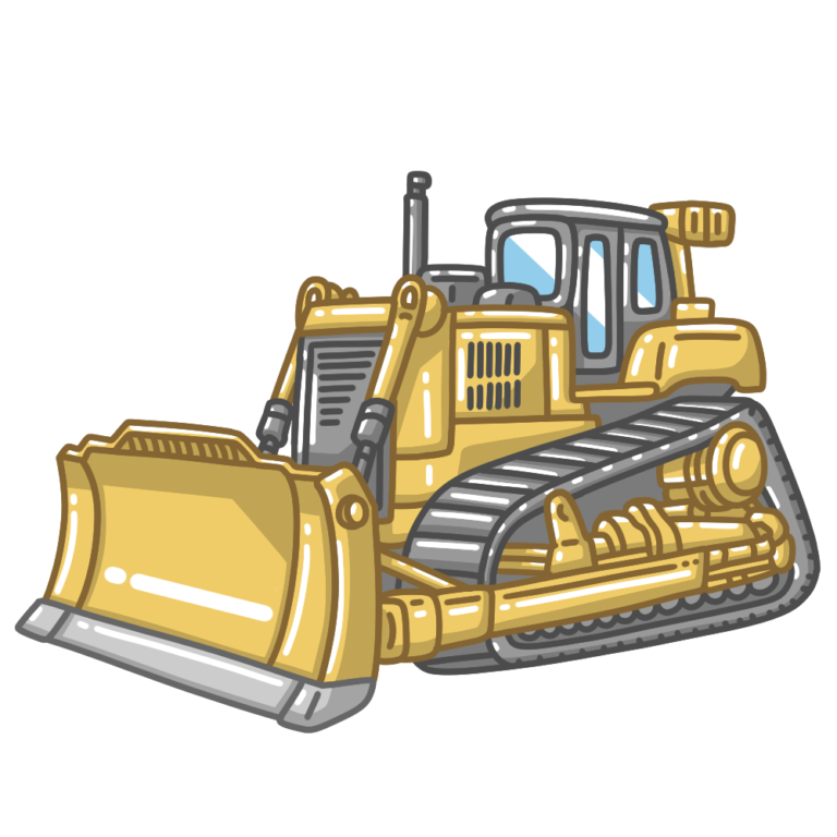 ブルドーザーのイラストです。(建設機械、工事) 工事現場で土を押したり地面をならしたりするブルドーザ […] -
