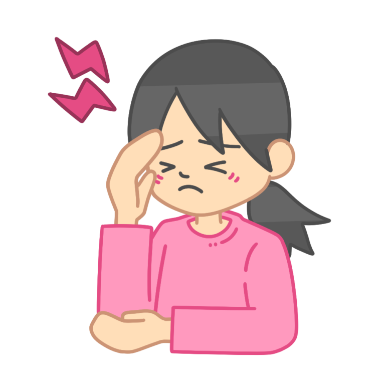 頭痛がする女性のイラストです。(偏頭痛) こめかみを押さえてつらそうにしている女性を描いたイラストで […] -
