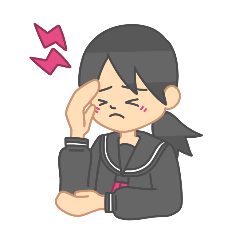 頭痛がするセーラー服を着た生徒(偏頭痛)のイラストです。 こめかみを押さえてつらそうにしている制服を […] -