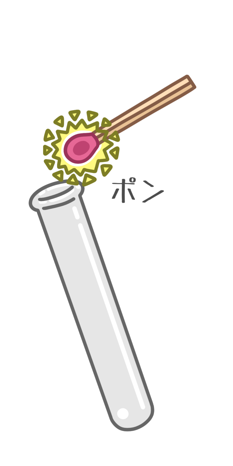 水素の入った試験管にマッチ棒を近づけるイラストです。(理科、気体の性質、水素、燃焼、実験、学校) 理 […] -