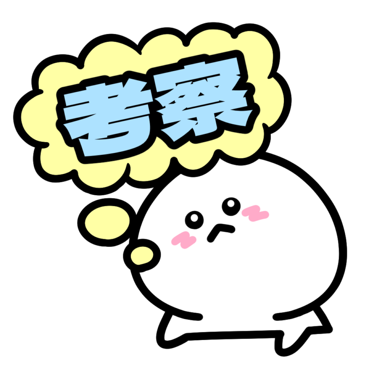 「むむ…深い…!」 何かをじっくり考え込んでいる“考察しらたま”のイラストです。上を向いて、物事を深 […] -