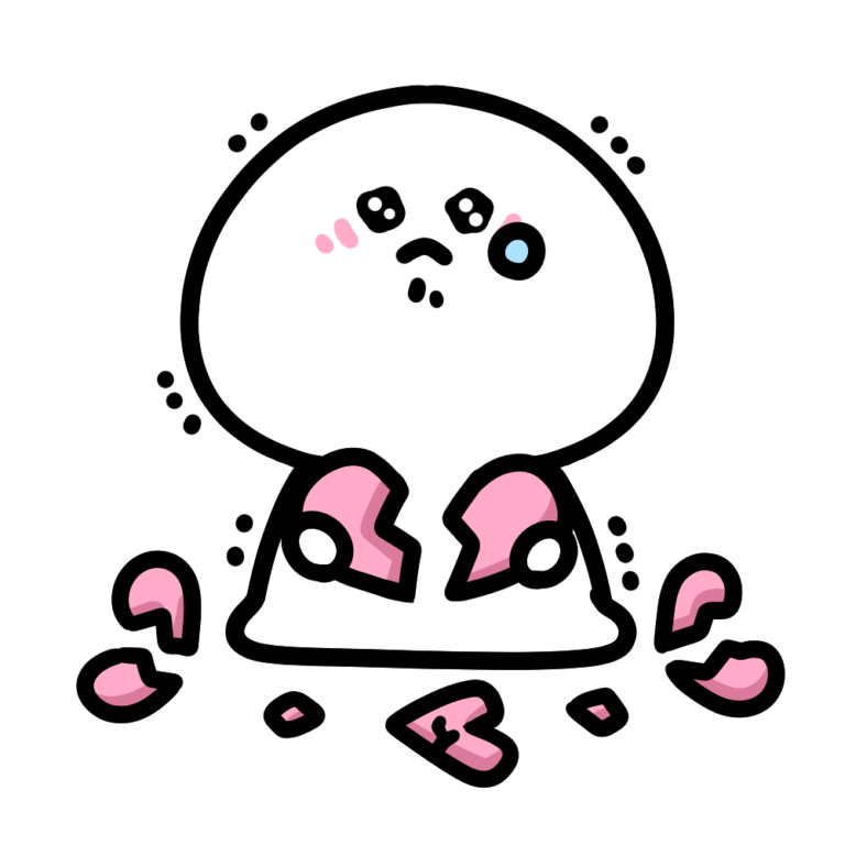 「ハート、割れちゃった…」 失恋して割れてしまったハートを抱え、涙目になっているしらたまのイラストで […] -
