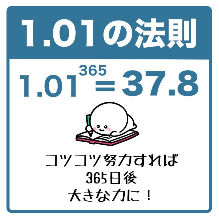 「1.01の法則」の解説イラストです。(1.01の法則、努力、成長) 毎日1%の積み重ねを続けること […] -