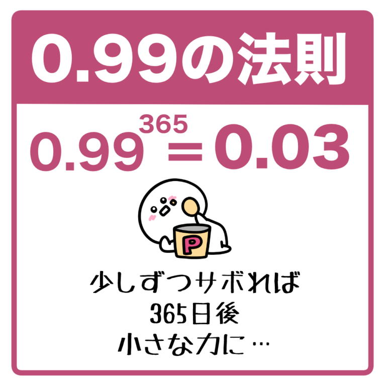「0.99の法則」の解説イラストです。(0.99の法則、努力、習慣、成長) 毎日ほんの少し気を抜くこ […] -